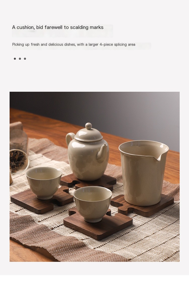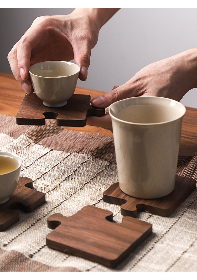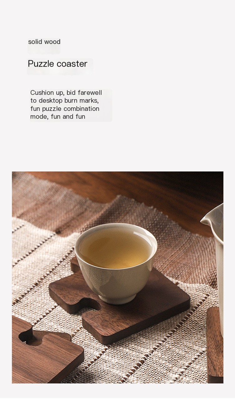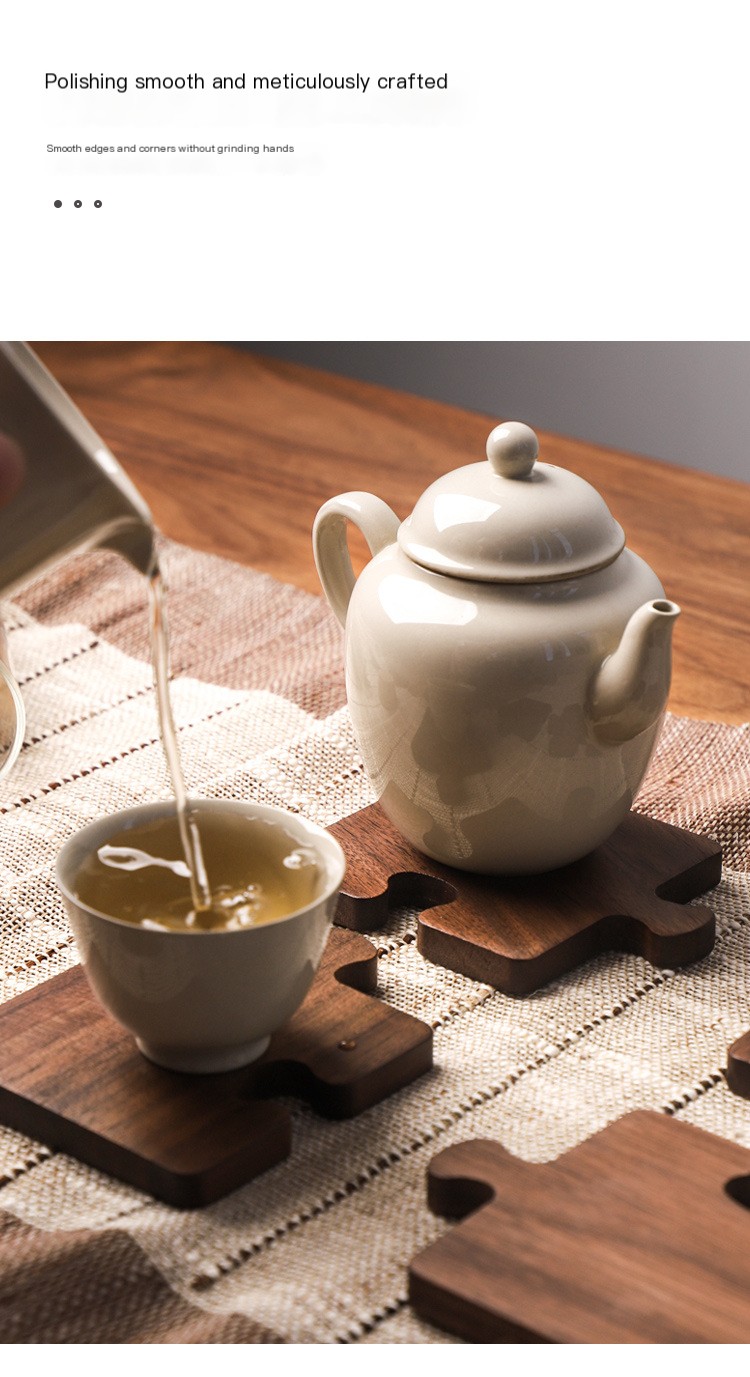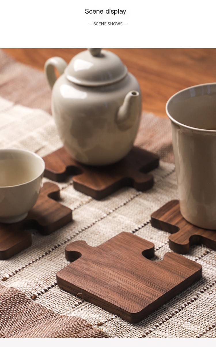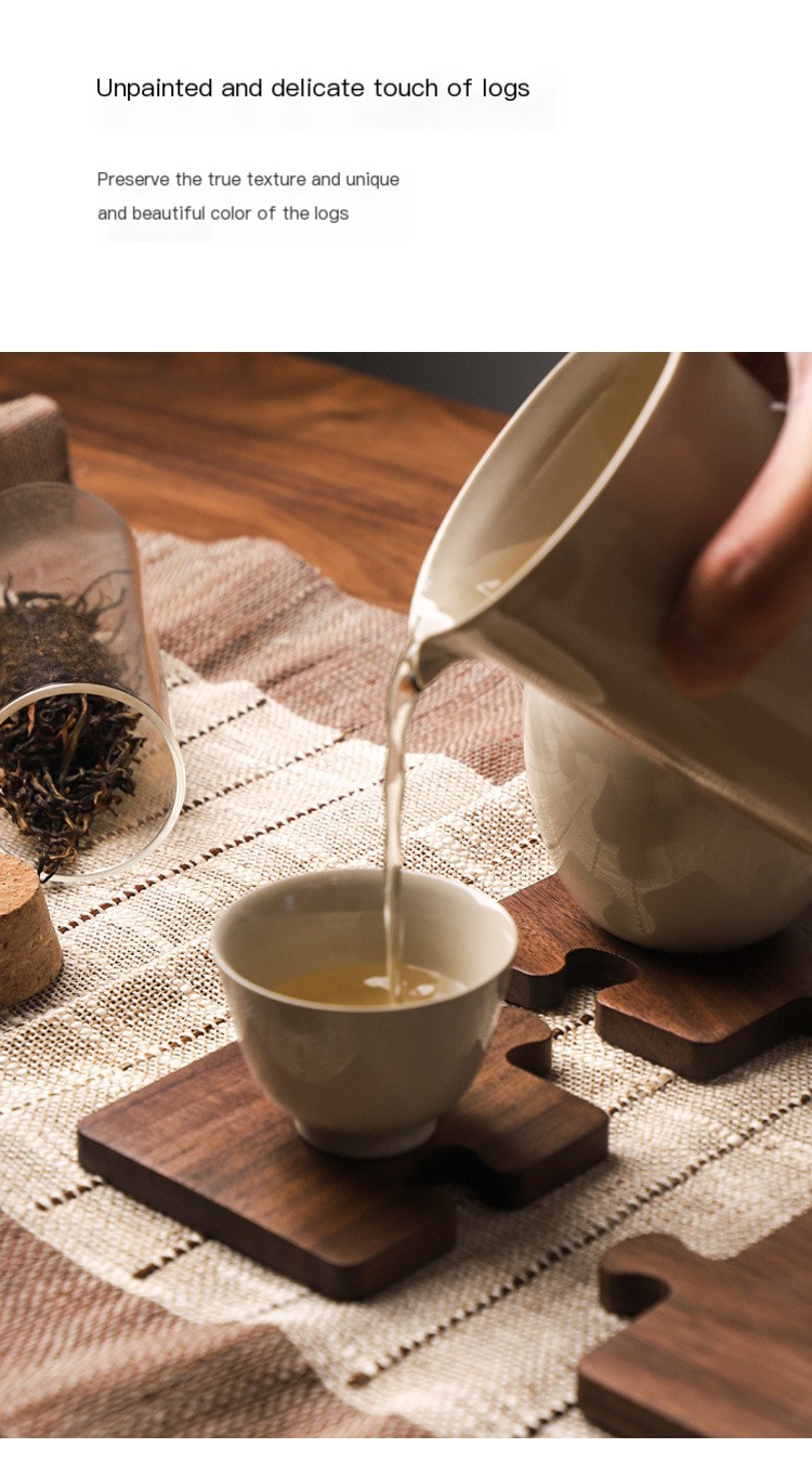 Each coaster features a unique puzzle design that adds a touch of elegance and charm to your tea or coffee setup. The natural wood grain brings warmth and a rustic feel, making them perfect for any occasion, whether it’s a casual afternoon tea or a formal gathering.